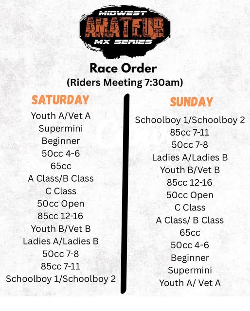 Midwest Amateur MX > Racing > Schedule